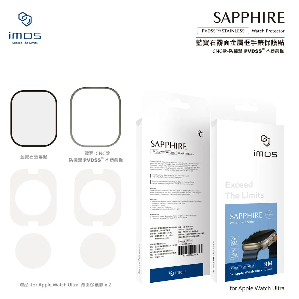 iMos Apple Watch Ultra 1/2/3 Sapphire PVDSS Screen Protector